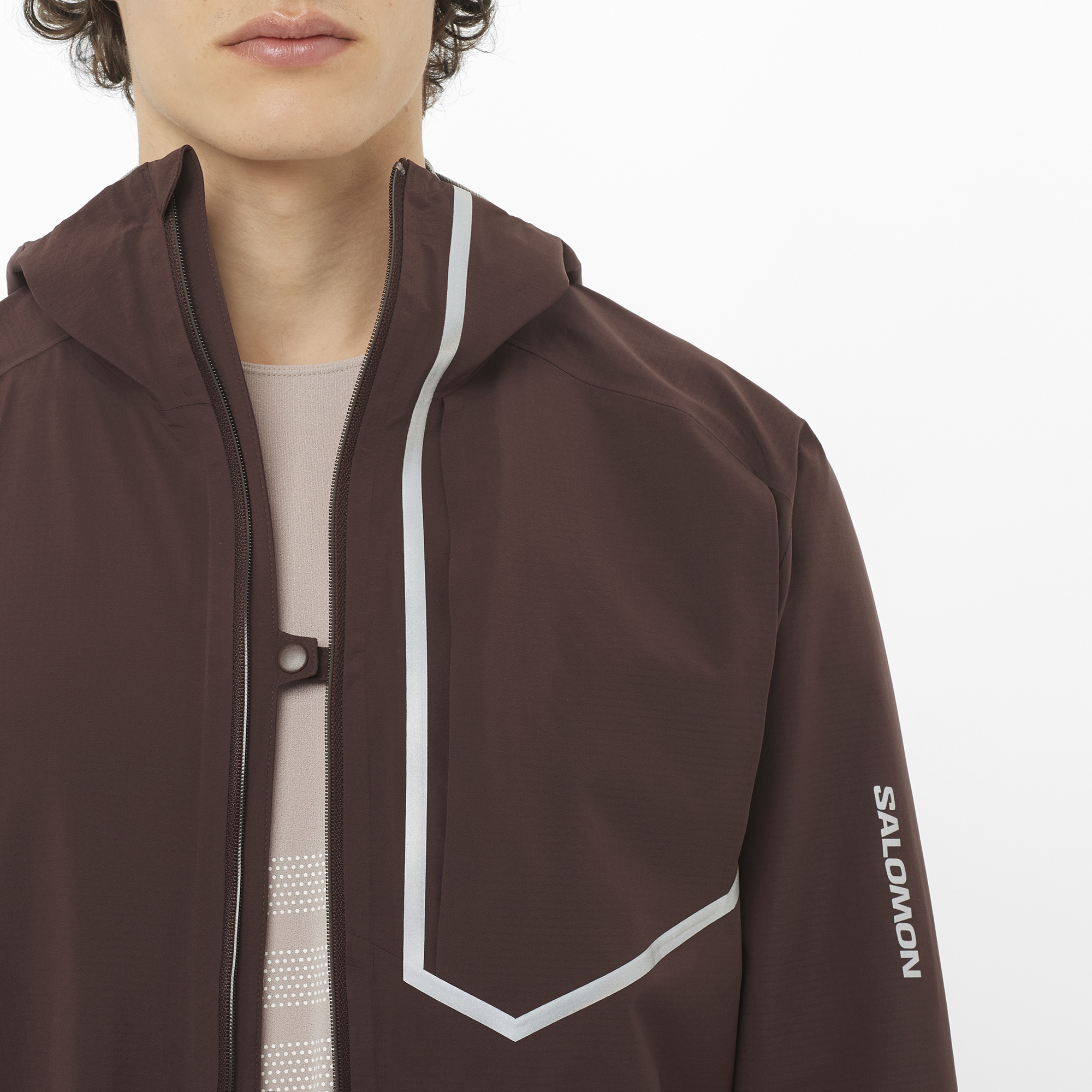 スマートなコンストラクションとシームレスショルダーが特徴の男性用 BONATTI TRAIL 防水ジャケットは、デザイン性に妥協せず、テクニカルなトレイルでも活躍する機能性を追及しました。軽量の日本製高品質 Pertex® ファブリックが優れた防水性を発揮。最適にフィットするデザインは、12L の Salomon ハイドレーションパックの上からの着用も可能です。