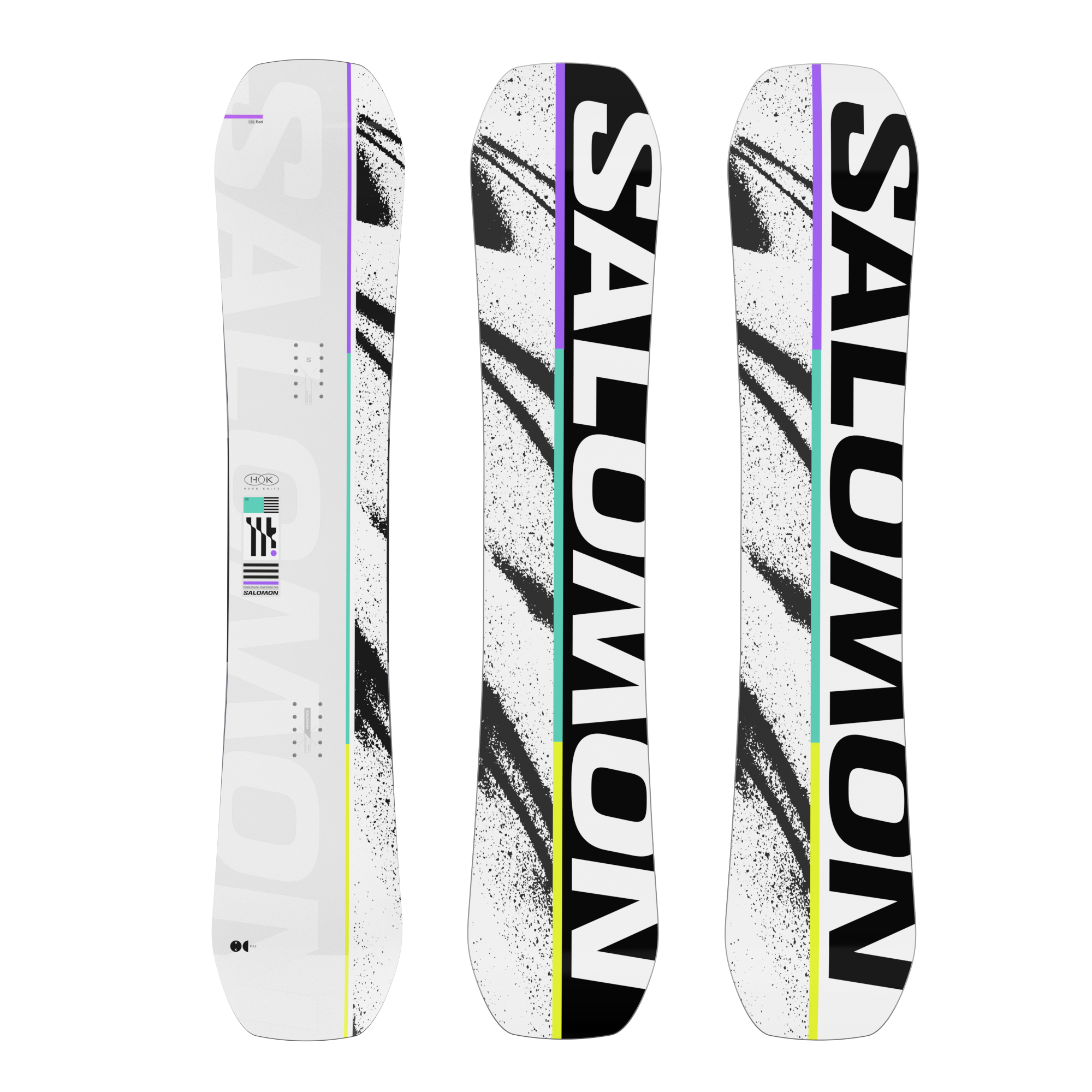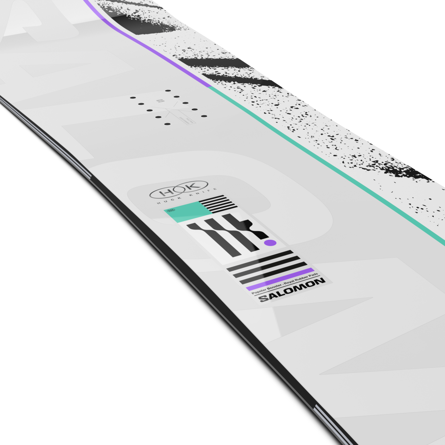 HUCK KNIFE は、最も挑戦的なキャンバーと汎用タイプのフレックスを組み合わせてコントロール性を高めた、Salomon のフラッグシップモデル。ジャンプ、トランジション、レールに対応したツインシェイプのフリースタイルボードです。より傾斜が急なノーズとテールのデザインが、スナップと反応性を高め、スウィングウェイトを軽減。高速での反発力と安定性を追求したさまざまなテクノロジーも搭載されています。