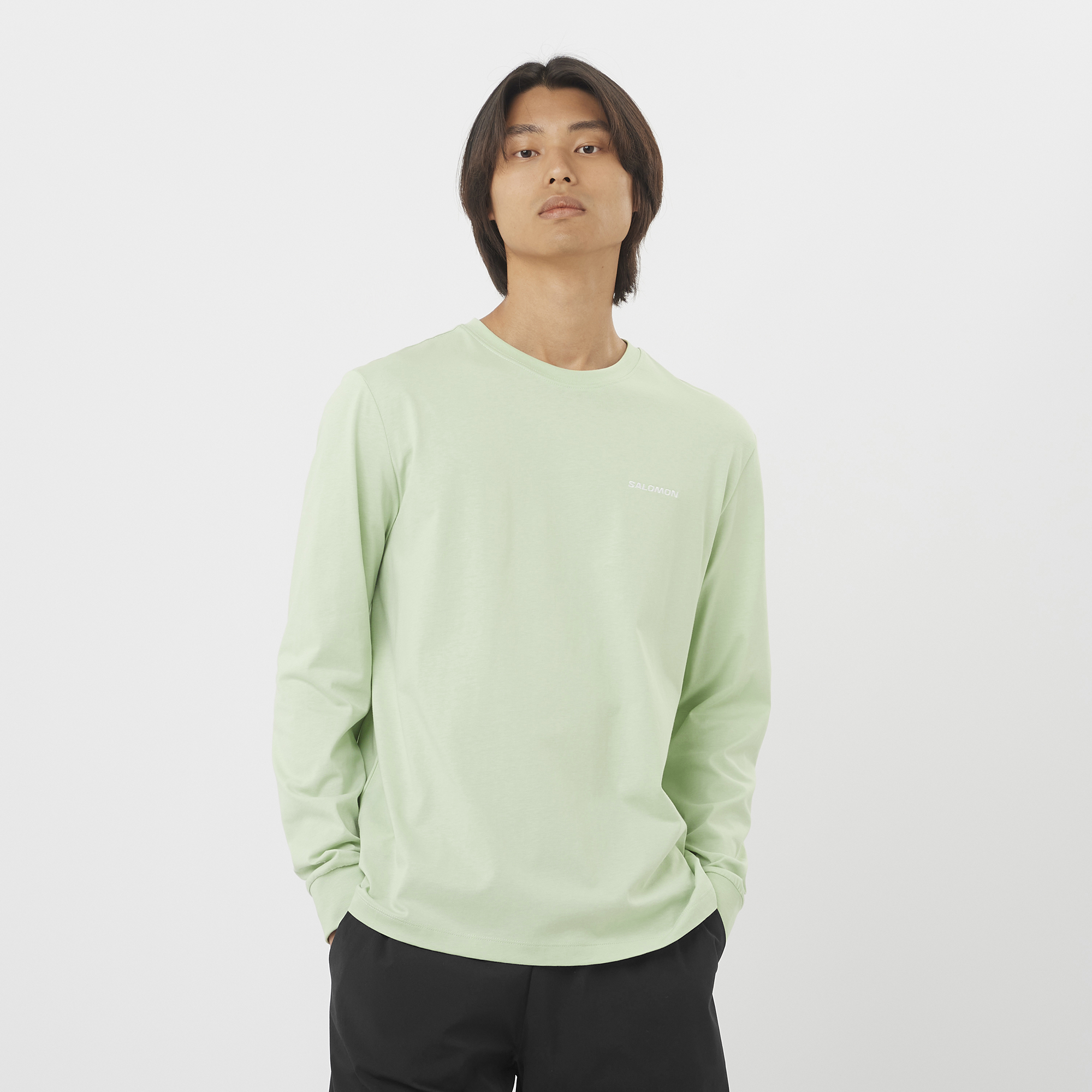 Salomon ロゴを配した、ロングスリーブの Salomon Logo T シャツ。通気性に優れた心地よい肌ざわりの柔らかなオーガニックコットンを使用しています。